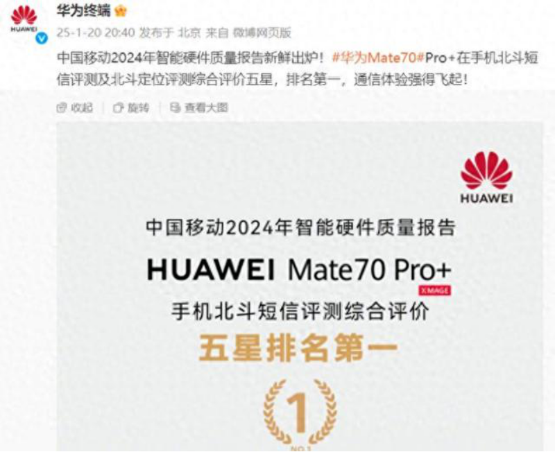 1月20號,據(jù)中國移動2024年智能硬件質(zhì)量報告顯示,華為Mate70 Pro+在北斗短信和北斗定位兩項評測中雙雙拿下了第一名,展現(xiàn)出非常強(qiáng)的技術(shù)和實力。這款搭載雙衛(wèi)星通信技術(shù)的旗艦機(jī),到底有什么過人之處?