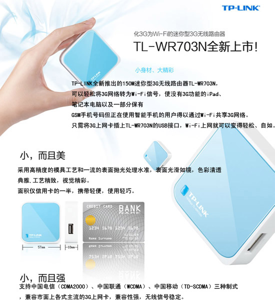 迷你型3G無(wú)線路由器TL-WR703N